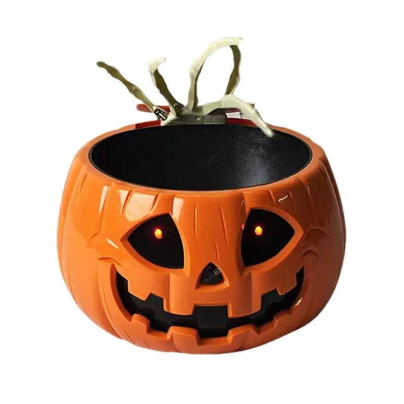 Pumpkin Candy Dish Pumpkin Halloween Auto-Sensing Dish Horror Candy Dish With Skeleton Hand Large Capacity Bowl For Prank Bar